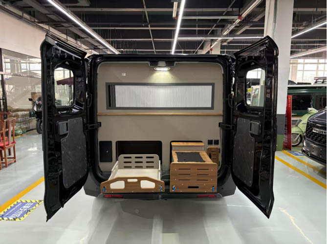 先锋官V旅居车搭载2.0T+8AT黄金动力链,最大功率115kW,峰值扭矩400N·m;电动升降硬顶设计,配有顶部折叠床,极大拓展车内空间;不惧限高,低顶可下地库。其凭借强劲动力、宽绰空间以及灵活通过性,让用户尽享“我行我宿我自由”的惬意旅居体验。