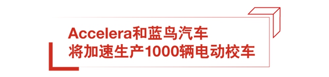 Accelera和蓝鸟汽车计划在未来12到18个月,生产并组建一个配备1,000辆电动校车的新车队,运行范围覆盖全美。双方合作将显著加快电动校车的生产,投产后的零碳校车数量将达到目前在运营的两倍以上。随着1,000辆新电动校车的上路,每年将减少10,600公吨碳排放。
