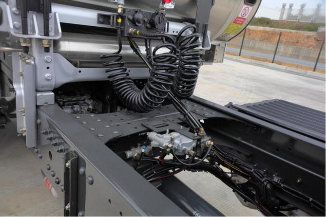 乘龙H7 LNG牵引车的轻量化秉承“双降”黑科技,采用高强度单层车架、分体式轻量化悬架、铝合金轮毂,结构优化减少冗余部件,降重不降质;发动机降重、轻量化后桥、轻量化鞍座,应用高强度轻量化材质,降重反提质。