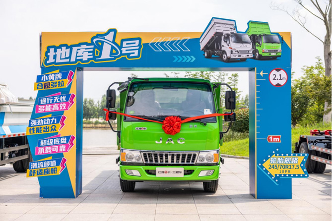 其中,江淮1卡工程车多功能卡车整车高度低于2.1米,拥有多种货箱尺寸,轴距2850mm/3300mm可选,能够轻松应对农资、废品回收、地下室作业、建筑专修垃圾、城市出租等八大应用场景;合规小蓝牌满足蓝牌最新法规标准,合规无忧,C证可驾驶,拥有更多路权,高度低于2.1米,小巧灵活,可满足建材运输、建筑垃圾、地库作业等蓝牌工程用车场景,是城建最后一公里运输利器。