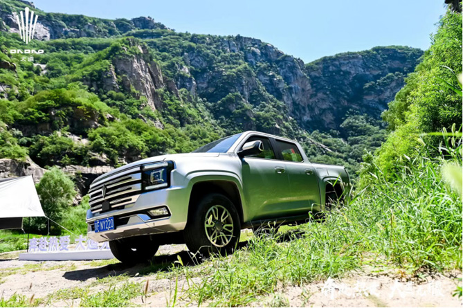 当行进到土路上的壕沟、炮弹坑路况时,大道皮卡的硬派越野本领就派上了用场,极限路况对它的通过性几乎形不成任何挑战。大道皮卡拥有220mm同级最优悬挂行程,接近角和离去角分别达到30°和26°,天然拥有良好的通过性,四驱系统的加持可以轻松应对交叉轴等极端路况,通过对动力的有效分配,提升极端路况的脱困能力,可谓驭见崎岖,皆为坦途,整个山区路段的驾驶整体感觉并不费力。