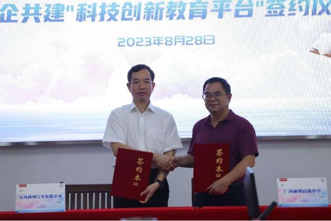 在支持教育科研、培养专业人才方面,东风柳汽可谓不遗余力。8月28日,东风柳州汽车有限公司与广西柳州高级中学校企共建“科技创新教育平台”签约仪式在柳州高级中学举行。东风柳汽与柳州高级中学未来将在奖学金资助、开展研学参观、提供实习机会等多方面进行深度合作,助推柳州“产教融合”发展。同时此次签约合作也将继续扩大建设“望子乘龙”公益助学项目,帮助更多卡友子女实现求学梦、就业梦。