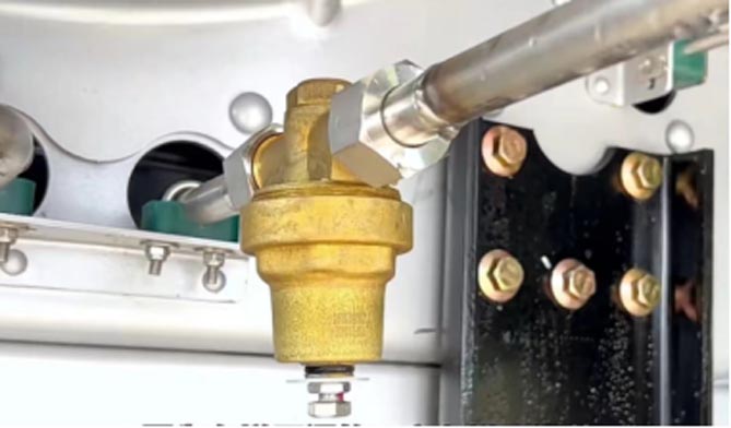车辆长期停放后,气瓶多少会吸收一定的热量,低温的液体被气化后,就会造成气瓶的压力持续升高。不同气瓶安全阀的设计稍有不同,以一汽解放JH6车型为例,当压力达到1.9兆帕时,一级安全阀(主安全阀)打开,将高压气体排出。如果主安全阀失效也不必担心,当压力升高到2.41兆帕时,二级安全阀(副安全阀)开启,将高压气体排出。气瓶设计了主、副两套安全阀,可以很好保证气瓶的安全。