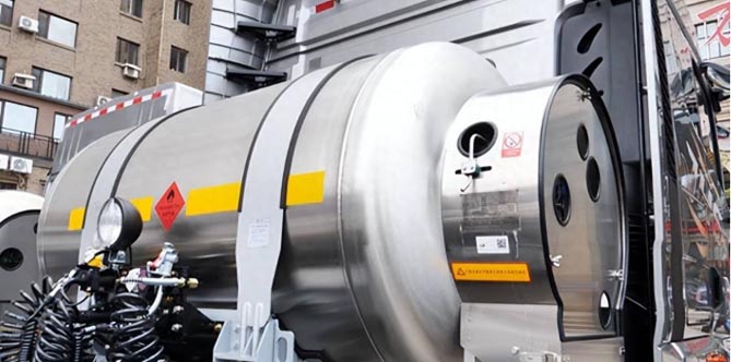 配有智能增压系统的车型,当车辆出现重载爬坡、燃料消耗快、气瓶液位低或是充装了低温液体时,就会造成气瓶压力低、增压过程慢的情况,从而可能造成车辆无法正常运营。当气瓶内的压力达到了控制器规定值时,增压泵就会自动停止工作,完成了整个智能增压的过程。