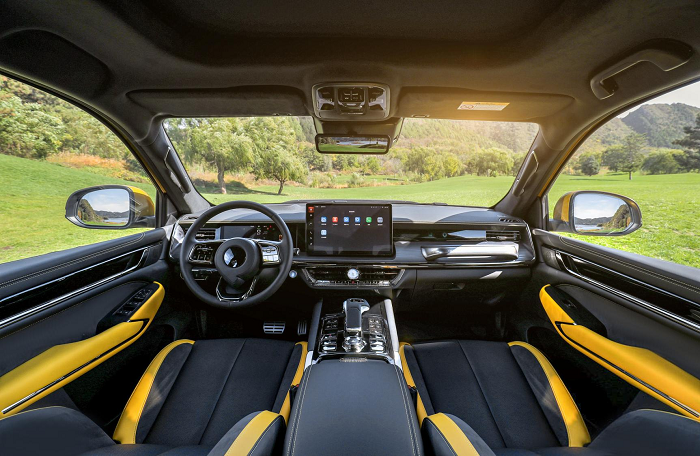山海炮性能版座舱,豪华之上再跃升。内饰采用全黑点缀金黄包覆,搭配哑光电镀装饰,配备12.3英寸仪表+14.6英寸悬浮中控屏,营造出满满的科技氛围。座舱后方更有国内首创后风挡电动小窗,方便摄影取景,现场媒体争相体验,并纷纷点赞。
