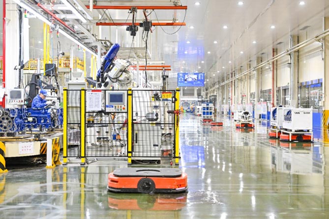 ——构建全球最大的动力产业集群。近年来,潍柴加速推进新一代信息技术与制造融合应用,全力打造行业领先的“黑灯工厂”,相继投资建成大缸径高速高端发动机智能工厂、新百万台数字化动力产业基地,先后被授予国家首批“智能制造试点示范项目”、全球“灯塔工厂”,连续两年发动机年销量突破100万台,成为全球最大的柴油发动机生产制造集群。“硬件”加码的同时,潍柴“软件”也在加速,在潍柴WOS管理模式基础上提出CLICK五步管理法,满足百万台级动力系统大规模定制,为我国装备制造业高质量发展提供了新范式。据统计,潍柴发动机累计销量超过1100万台;全球多缸柴油机适配市场占比10%,中国多缸柴油机适配市场占比30%,堪称全球“动力之王”。