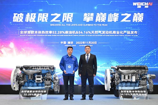 ——推动中国动力迈向全球科技巅峰。潍柴深耕内燃机领域70余年,聚焦“国家战略、行业短板、产业瓶颈”,充分发挥企业在科技创新中的主体作用,与全球130余家上下游企业共同打造“研发共同体”,构建了以动力总成为核心的产业众创生态圈,以开放创新的模式开展前沿技术研发。这些优秀的共同体成员紧跟潍柴、紧密协作,突破了一项项了不起的科技成就。2002年,潍柴发布中国首款具有完全自主知识产权的重型商用车柴油机;2005年,潍柴首创全球动力总成商业模式,支撑中国商用车品牌牢牢占据99%的市场份额;2020年-2022年,潍柴柴油机本体热效率突破50%、51%、52%,连续三次创造世界纪录,切实提升中国动力在世界内燃机领域的话语权。