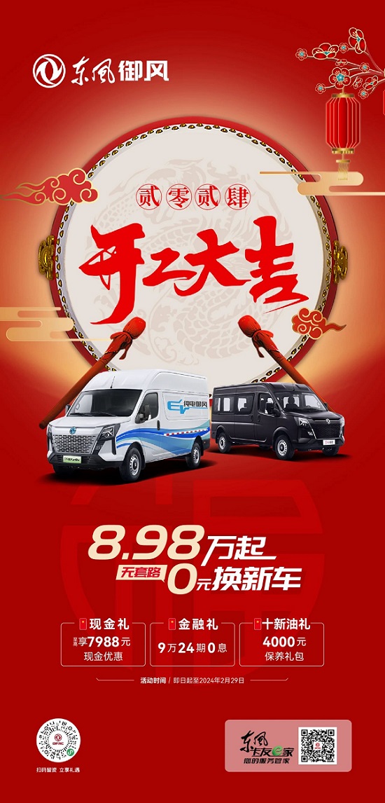 东风御风V9+以其强大属性,成为车友们不可或缺的好伙伴。2024年为助力车友们【稳赢】梦想,东风御风为大家准备了惊喜价,更是奉上三重好礼,为新年鸿运添个“好彩头”!