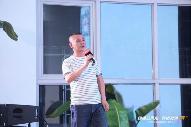 “作为乘龙卡车的老用户,有幸参加此次活动,不仅吃喝玩乐一应俱全,还能买到这么舒适的绿通房车,就很赞!这款车非常符合我的用车需求,动力强劲且节油经济,再加上今天的订车优惠,买到就是赚到,有了这车我有信心能挣到钱。”
