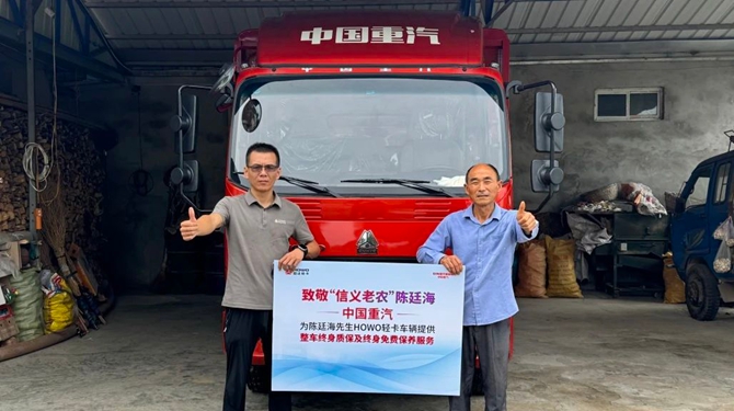 中国重汽服务人员为陈廷海培训答疑车辆知识