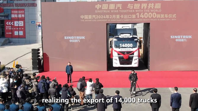 3月1日上午10:00,“中国重汽 与世界共赢” 2024年2月份出口14000辆重卡,在济南海关综合保税区隆重举行最后一批发车仪式。济南海关关长刘卫,山东重工集团董事长、中国重汽集团董事长谭旭光,中国出口信用保险公司山东分公司总经理魏广远,共同参加活动。