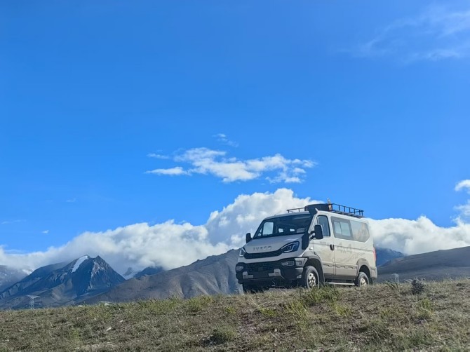 历经一个月,山哥驾驶着这台原汁原味依维柯原厂出品的欧霸·山海素车,翻山越岭,来到了世界上海拔最高、路况最艰险的公路——新藏公路。