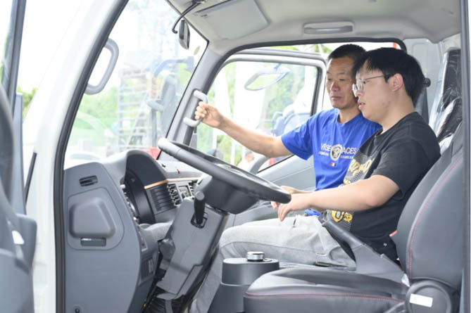 “帅铃EV5采用著名品牌81kWh电池,CHTC等速法续航里程达400km,标载市区工况下续航里程240km+,重载市区和省道下续航里程200km+,同电量行驶更远、能耗更低。”动力电池厂家介绍了其领先的电池性能和续航能力,江淮1卡新能源产品技术人员详细介绍了其产品价值。