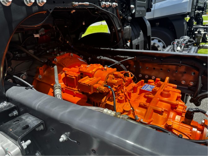 动力系统上,欧航 H 新品搭载福田康明斯 7.0L 发动机与采埃孚变速箱组成的 “超级动力链”,这套组合在商用车领域以高效稳定著称。其中,发动机输出功率达 380 马力,峰值扭矩 1700N・m,1000-1400rpm 转速区间即可爆发最大扭矩,即便面对川藏线海拔 4000 米以上的高反路段,或是渝东南连续 10 公里的陡坡,车辆仍能保持稳定行驶速度,瞬态响应优势显著,可确保蒲江丑柑、奉节脐橙等生鲜产品在 3 天最佳保鲜期内准时送达目的地。能效表现同样亮眼,通过 0.41 左右的超低风阻系数设计、低滚阻轮胎应用及铝合金轮毂等轻量化材料加持,整车百公里油耗较同级传统车型降低 5L 左右,按年运营 15 万公里计算,能为用户节省一笔可观的燃油成本。