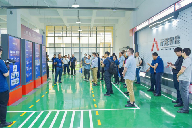 2023年5月31日,由国家邮政局指导,国家邮政局发展研究中心主办“2023邮政业科技创新战略联盟大会”在安徽芜湖南陵举行。国家邮政局党组成员、副局长戴应军等领导以及邮政快递行业的龙头企业和科研院校的代表参加大会并参观行深智能AI泛运力载具智造车间。