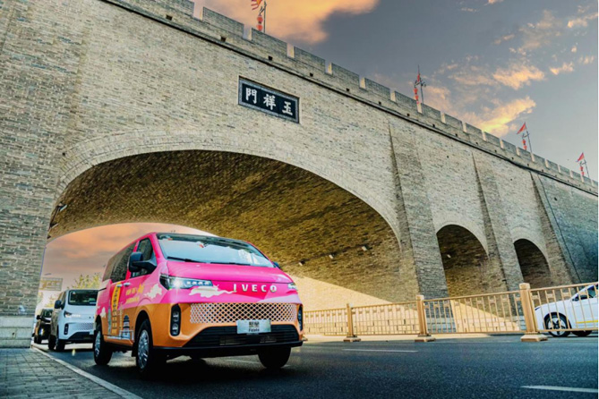 西安是十三朝古都,有着3100多年的建城史和1200多年的建都史,先后有周、秦、汉、唐等13个王朝在这里建都,有“秦中自古帝王州”的美誉。厚重的历史文化积淀,赋予了西安十三朝古都的雄浑气魄,无数文人墨客在长安写下了数不胜数的诗词,孟郊写道:“春风得意马蹄疾,一日看尽长安花。”当依维柯·聚星车队就梦幻集结在街头,驶过大明宫、永宁门、城隍庙、大唐不夜城等地标建筑,看遍这繁华的长安城,一路上可谓星光璀璨,甚是壮观,为古朴悠久的长安城增添了年轻活力的色彩。巡游现场,长长的车队、炫酷的喷涂吸引了许多市民朋友驻足围观,更有人对其一见钟情,上前询问车辆的价格、配置、性能等。