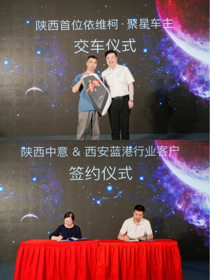 活动通过新车讲解、老车主现身说法、大咖分享、场景化演绎、神秘抽奖、试乘试驾等环节让用户抢鲜体验有维新青年聚星的魅力,将产品优势与真实的生活体验完美融合在一起。本次品鉴会现场,陕西首位依维柯·聚星车主的交车仪式圆满开展,南京依维柯授权经销商陕西中意还与行业客户进行了现场签约,将品鉴会的气氛推向了高潮!