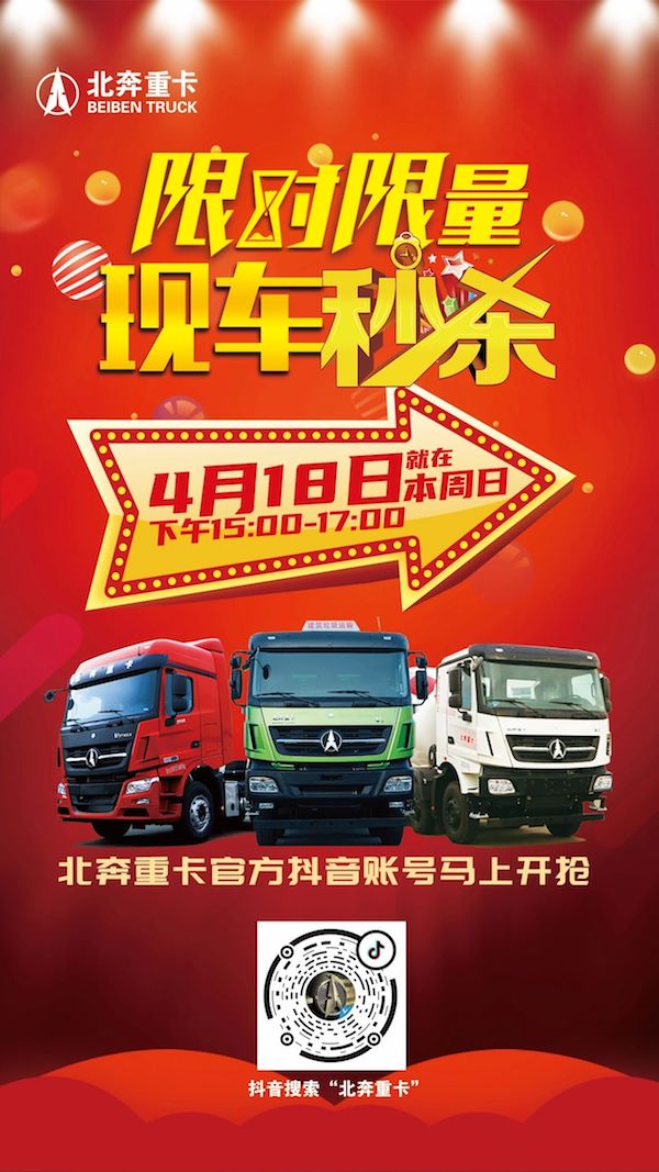 限时限购,现车秒杀,北奔重卡直播购车节即将开启