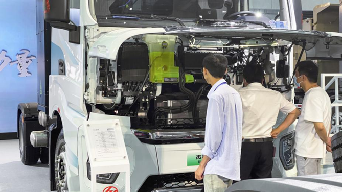 另一款展出的红岩杰虎H6氢燃料牵引车,其性能同样夺目。此款车型的补能时间仅需15分钟,最大综合续航里程超过1000公里,并于今年2月在黑龙江黑河地区通过极寒标定测试,可以在-30℃,甚至在-35℃的极端环境里仍能稳定启动、正常行驶,并保持稳定输出长续航。同时,该车型所搭载的PROME P390燃料电池系统,其功率、功率密度和低温启动等各项技术指标,均已达到国际一流水平,可有效满足车辆的多环境应用。上汽红岩氢燃料重卡凭借其长续航、低氢耗、零排放的特性,可为客户实现降本增效和净零排放。