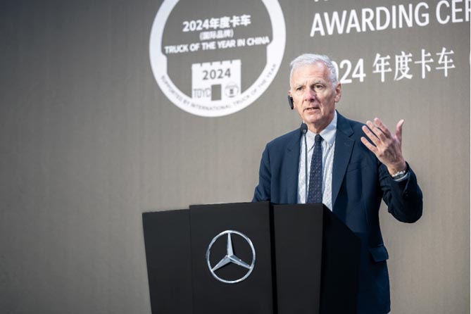 北京福田戴姆勒汽车有限公司总裁兼首席执行官、梅赛德斯-奔驰事业部负责人谢厚德博士在颁奖典礼上表示:“此次梅赛德斯-奔驰Actros C获得年度卡车奖项,我们倍感振奋。它续写了欧洲‘兄弟’们五度荣膺国际年度卡车桂冠的辉煌,也证明了我们正基于深化的本土业务足迹,在贴近中国市场、迅速响应需求的路上稳步前行。我们将持续融合先进的全球科技与极高的本土价值贡献,为客户创造不同。凭借梅赛德斯-奔驰卡车高质量的在华产品与服务,我们致力于助力客户成功。”