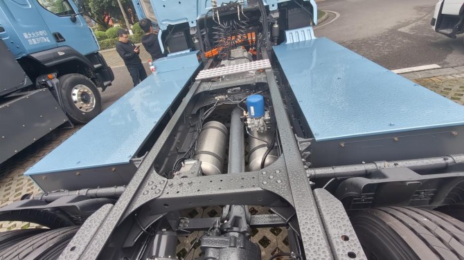 合规多拉即多赚。为此,乘龙翼威5纯电牵引车应用新材料、新结构、新工艺,采用高强度铝合金材料,优化拓扑结构,搭配集成式控制器,实现科学降重不降质,整车自重最低轻至8.8吨,比竞品轻700kg以上。这意味着每趟运输可多装载700公斤货物,每年能为卡友多赚3万元,让轻量化真正转化为看得见的收益。