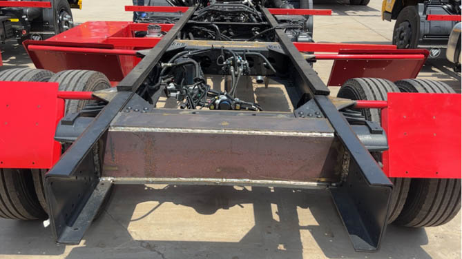整车采用215*65*(6+4)结构直通式双层车架,匹配前8后10+6片的高承载板簧,以及加强型轮胎与十万公里免维护后桥,为整车提供了执行重载清障任务的坚实基础。860mm的较低货台高度,以175cm左右的平均身高来看,仅到腰部以下的位置,有利于上装设计和降低作业重心,同时方便卡友拿取设备,提升稳定性。